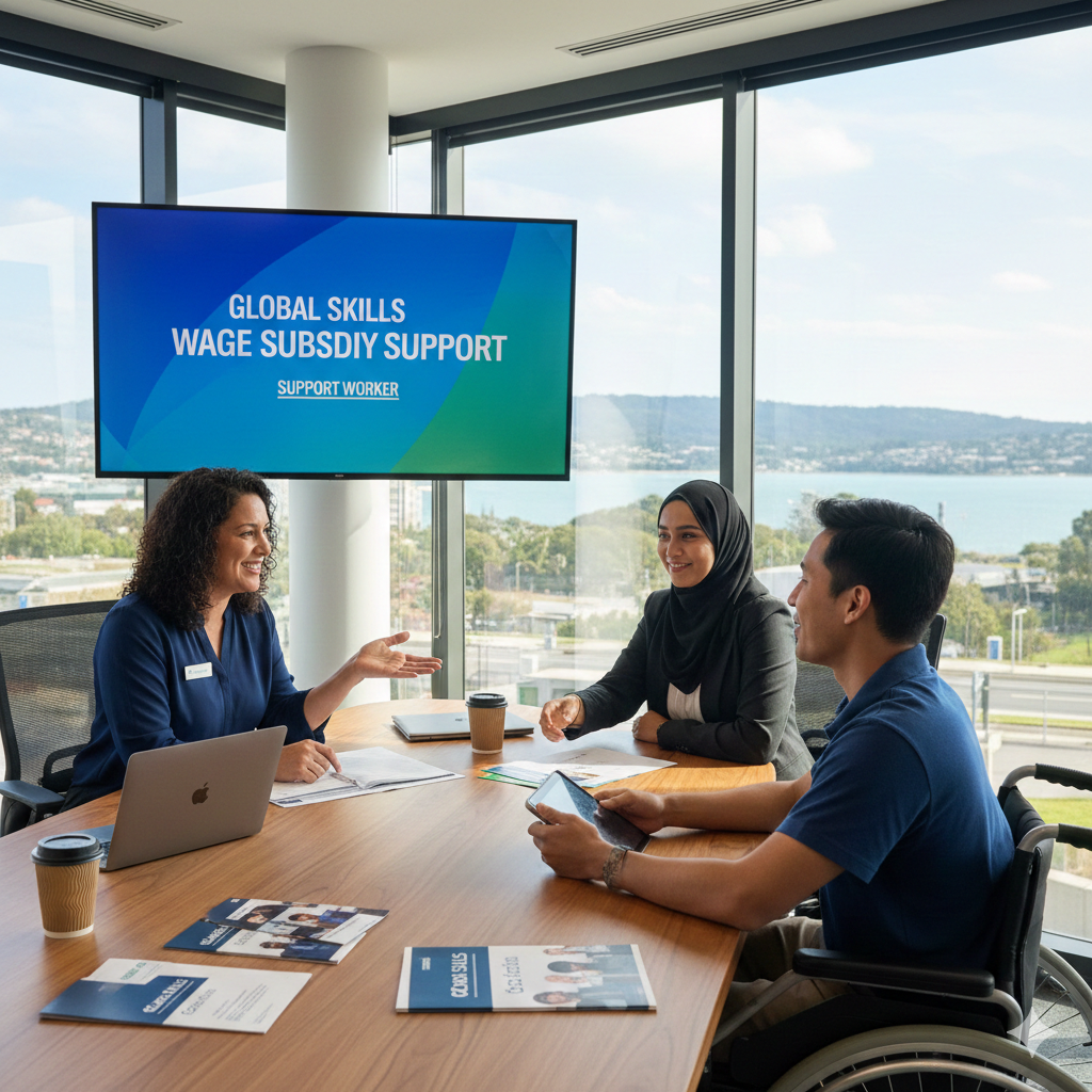 Global skills gosford wage subsidy support worker support enables Central Coast employers to hire support workers into new, ongoing roles by combining government wage subsidies of up to $10,000 (GST inclusive) with zero-cost recruitment, compliance guidance, and post-placement support that improves retention and long-term workforce stability.